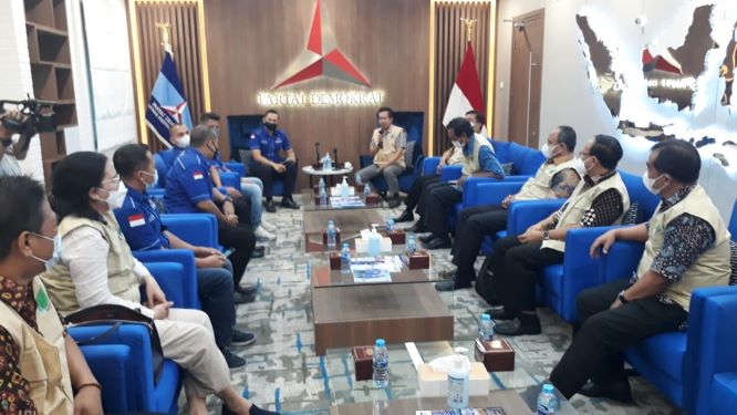 Ketua Umum Partai Demokrat Agus Harimurti Yudhoyono (AHY) saat beraudiensi dengan jajaran pengurus Pandu Tani Indonesia (Patani) di Kantor Pusat DPP Partai Demokrat, Jalan Proklamasi, Jakarta, Selasa (25/5/2021). . . .
