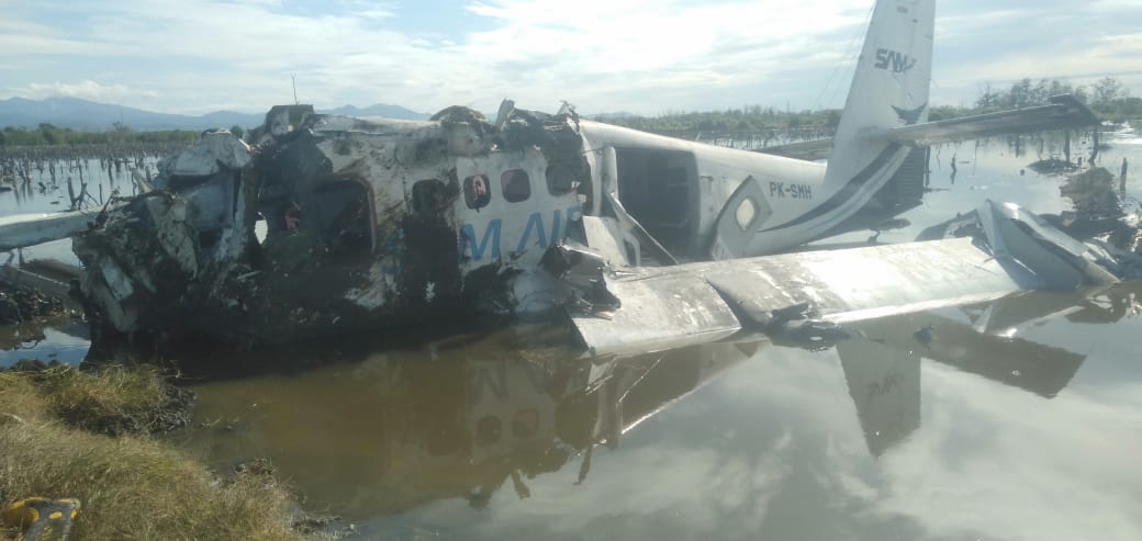BreakingNews, Pesawat Sam Air Jatuh di Bandara Bumi Panua Pohuwato, 4 Orang Meninggal